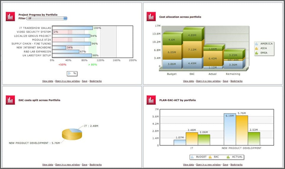 Identifiez rapidement les zones à problèmes grâce au tableau de bord du portefeuille de Cerri Project qui vous permet de surveiller les éléments critiques du portefeuille, notamment les problèmes, les calendriers, les livrables, les risques et les mesures. Cerri Project fournit des modèles flexibles et des capacités de tableau de bord PPM adaptées à vos besoins afin que les membres de votre équipe de projet, les PMO et les dirigeants puissent obtenir la vue d’ensemble et l’analyse nécessaires tout en leur permettant d’explorer les moindres détails.
