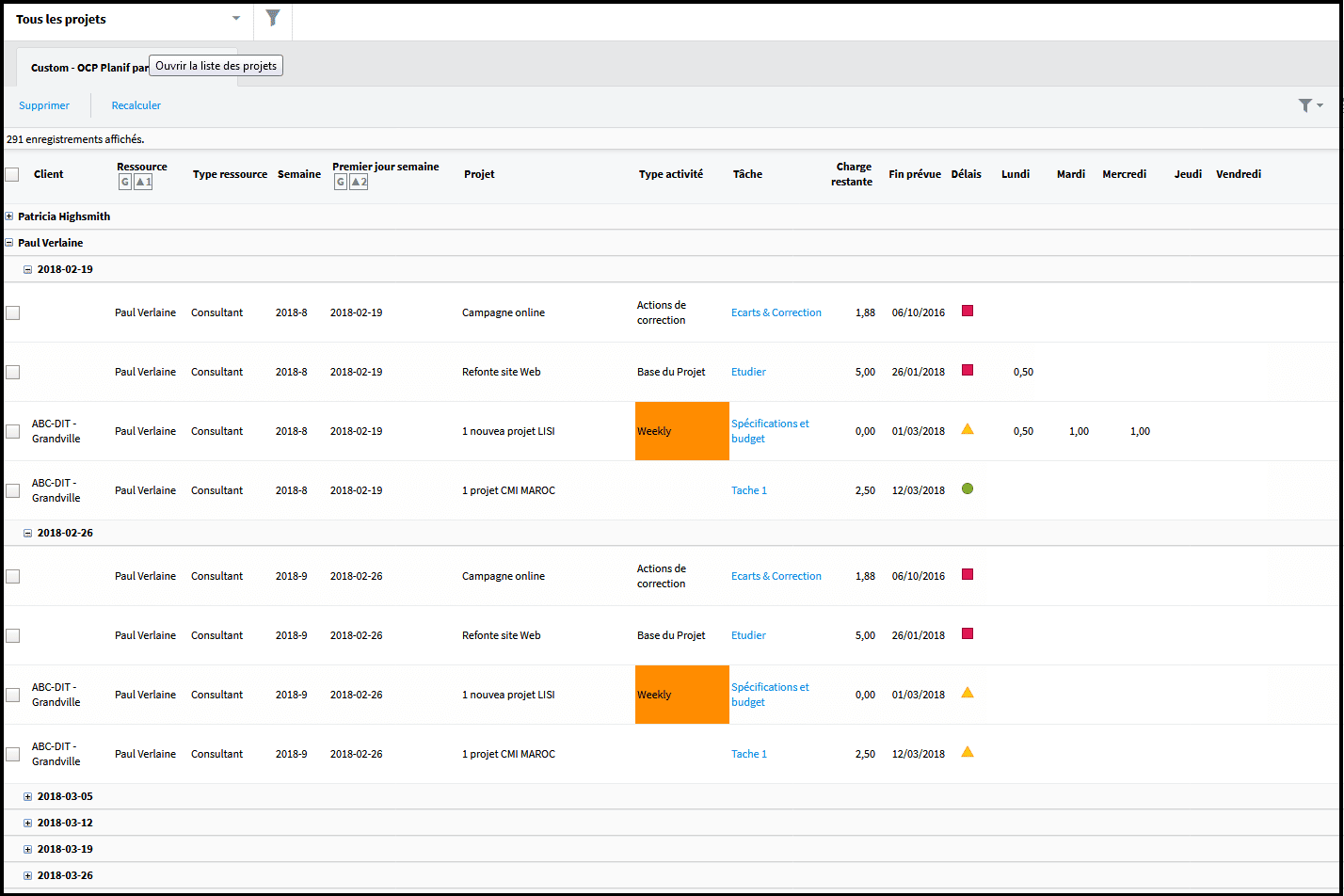 Gérez tout type de projet par ressource, client, projet ou activité grâce au workflow scheduler unique basé sur les rôles de Cerri Project. Triez-les par charge de travail restante ou par client pour obtenir votre vue préférée et la plus informative.