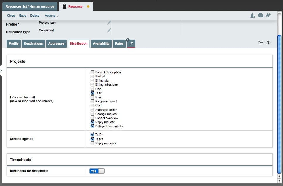 Améliorez la communication et le partage d’informations en créant des listes de distribution pour chaque type de document disponible dans Cerri Project. Ainsi, à chaque mise à jour ou document nouvellement créé, les membres de la liste reçoivent des notifications automatiques. Incluez les membres de l’équipe de projet et les utilisateurs extérieurs à votre organisation, tels que les clients ou les partenaires, qui doivent ou souhaitent être informés de l’avancement du projet et de ses mises à jour.