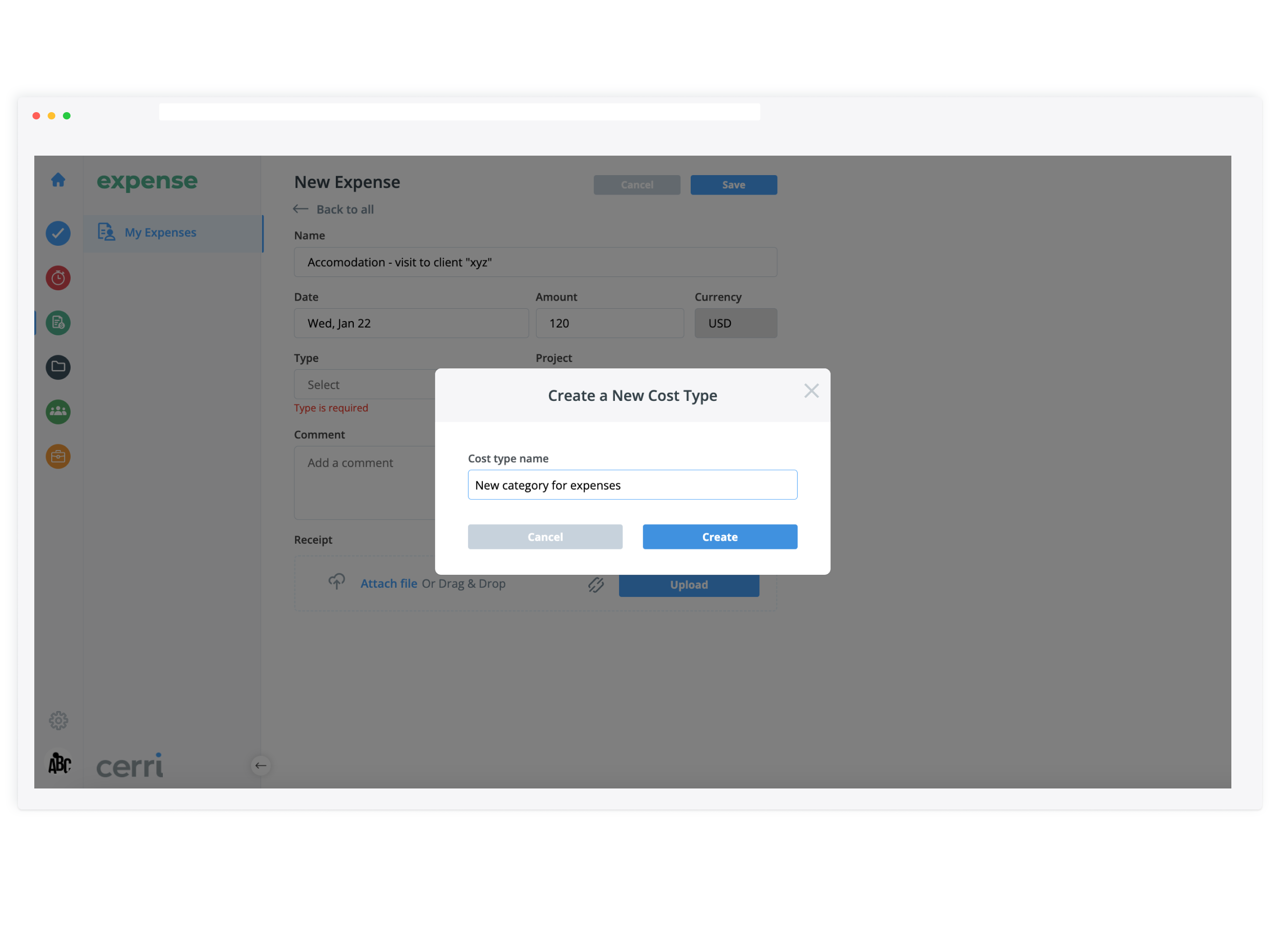 Organisieren Sie Projektkosten effizient, indem Sie Ausgaben in benutzerdefinierte Typen unterteilen. Diese Kategorisierung erleichtert das Tracking und das Finanzreporting, sodass Ihre Buchhaltungsrichtlinien optimal eingehalten werden.