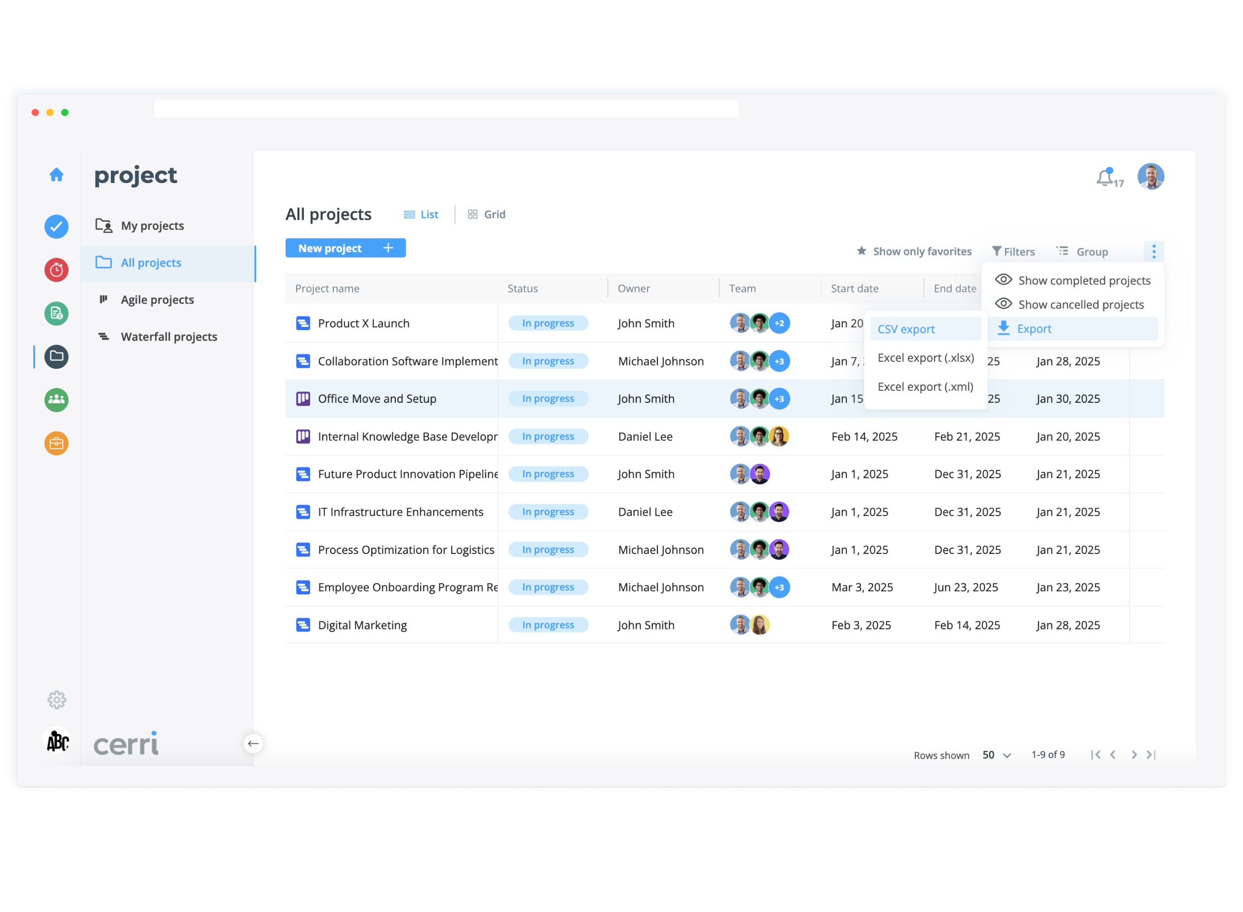 Cerri Work bereichert das Projektmanagement mit wichtigen Werkzeugen für die Zusammenarbeit und rationalisiert die Aufgabenerfüllung und die Arbeitsabläufe im Team. Erzielen Sie einen nahtlosen Projektfortschritt und steigern Sie die Produktivität Ihres Teams mit unseren integrierten Lösungen.