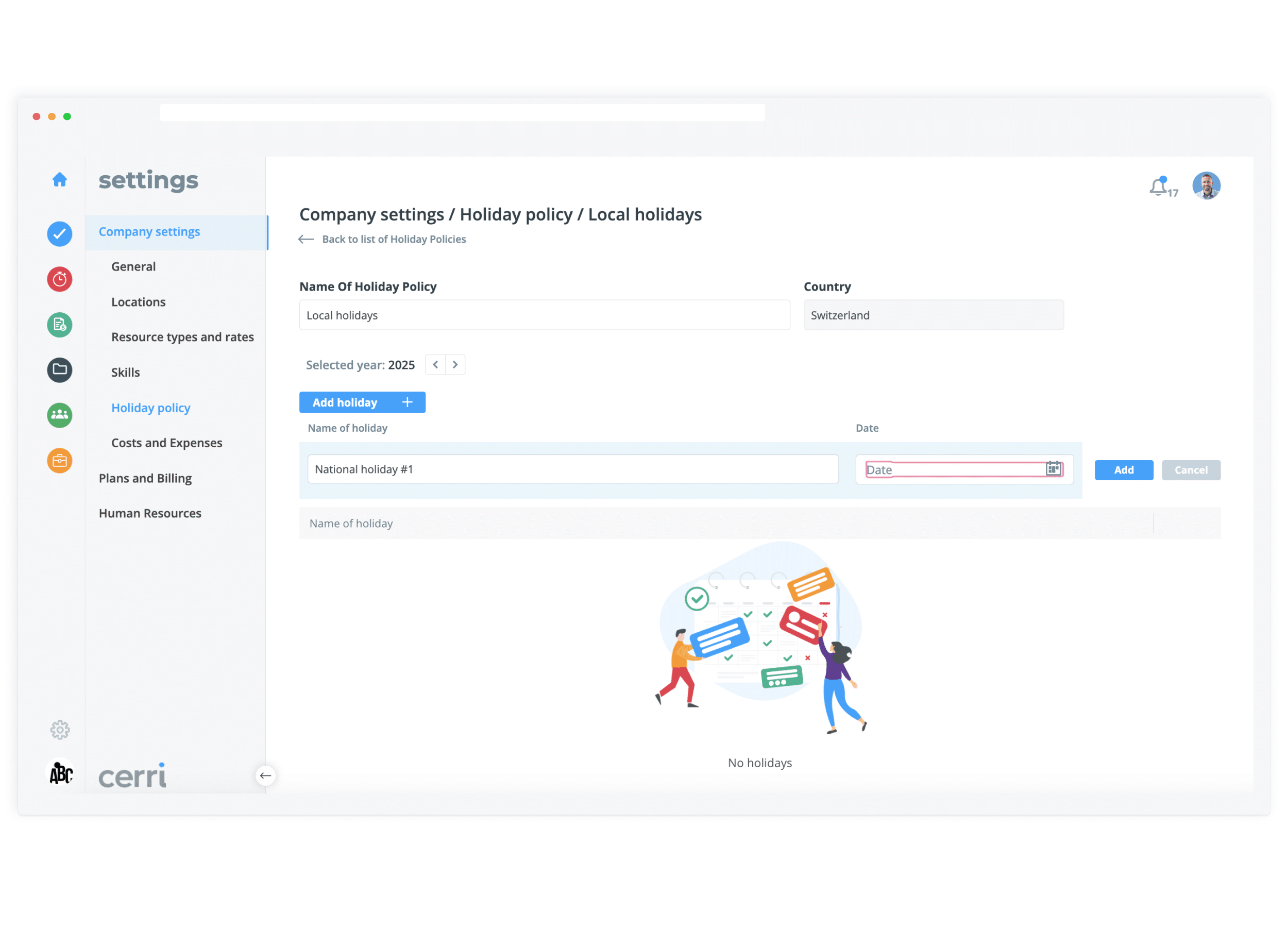 Verabschieden Sie sich von manueller Urlaubsplanung – Cerri Work erstellt automatisch Urlaubskalender basierend auf Standort oder Büro und sorgt für eine faire und einheitliche Urlaubsplanung mit voller Transparenz über Abwesenheiten.