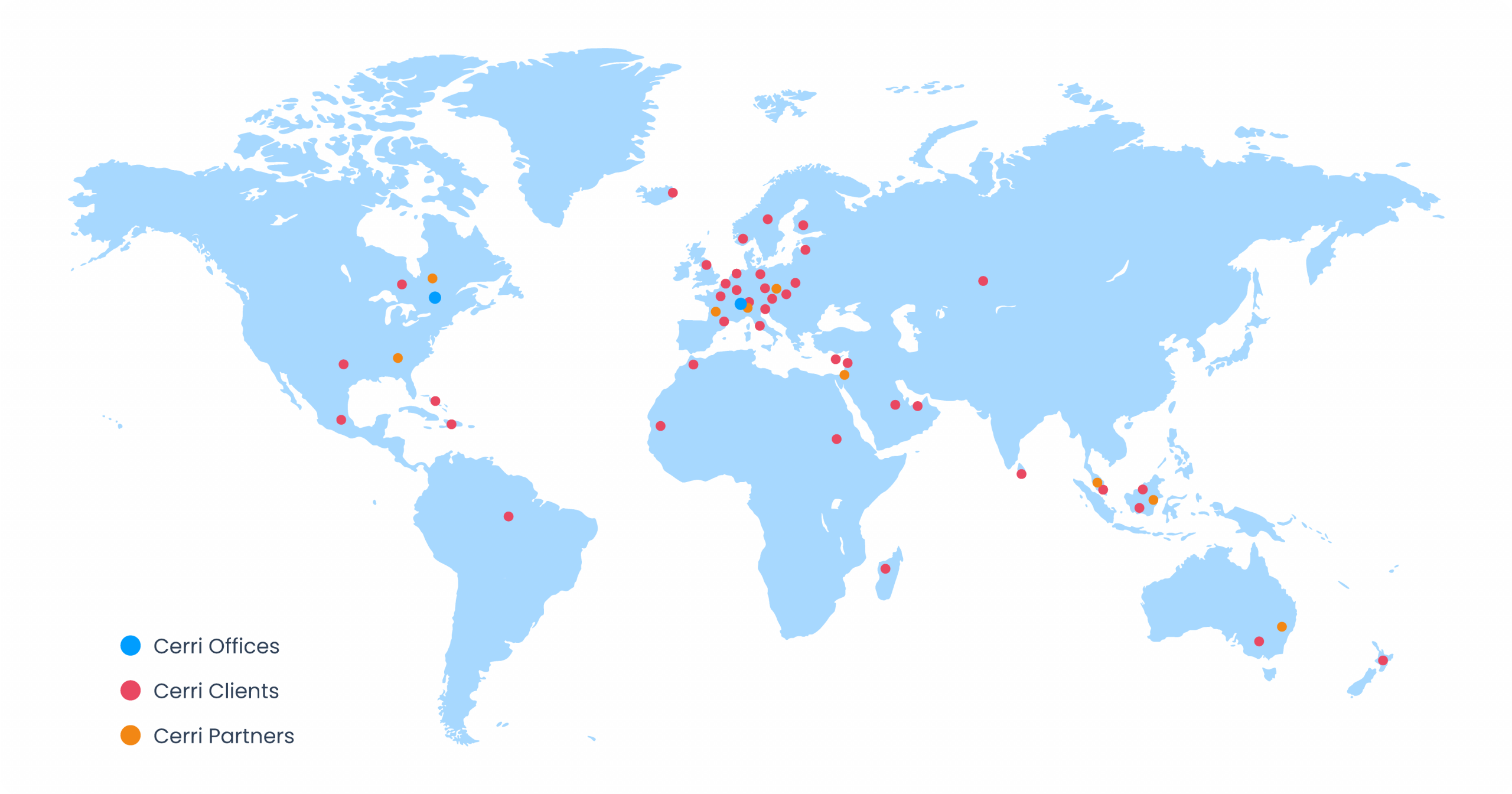 Confiado en todo el mundo, Cerri está presente en varios continentes con oficinas, clientes y socios en más de 30 países.