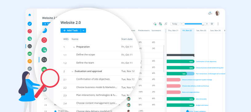 Es ist auch wichtig, den Fortschritt regelmäßig zu überwachen, um bei Bedarf Anpassungen vornehmen zu können und gleichzeitig den Gesamtzeitplan des Projekts im Auge zu behalten. Es ist leicht, die Fristen aus den Augen zu verlieren, wenn man mehrere Aufgaben gleichzeitig zu erledigen hat. Die Verwendung von Gantt-Diagramm-Software kann helfen, Zeitverluste zu reduzieren, indem sie einen visuellen Überblick über alle Aufgaben zusammen mit den geplanten Start-/Enddaten bietet.