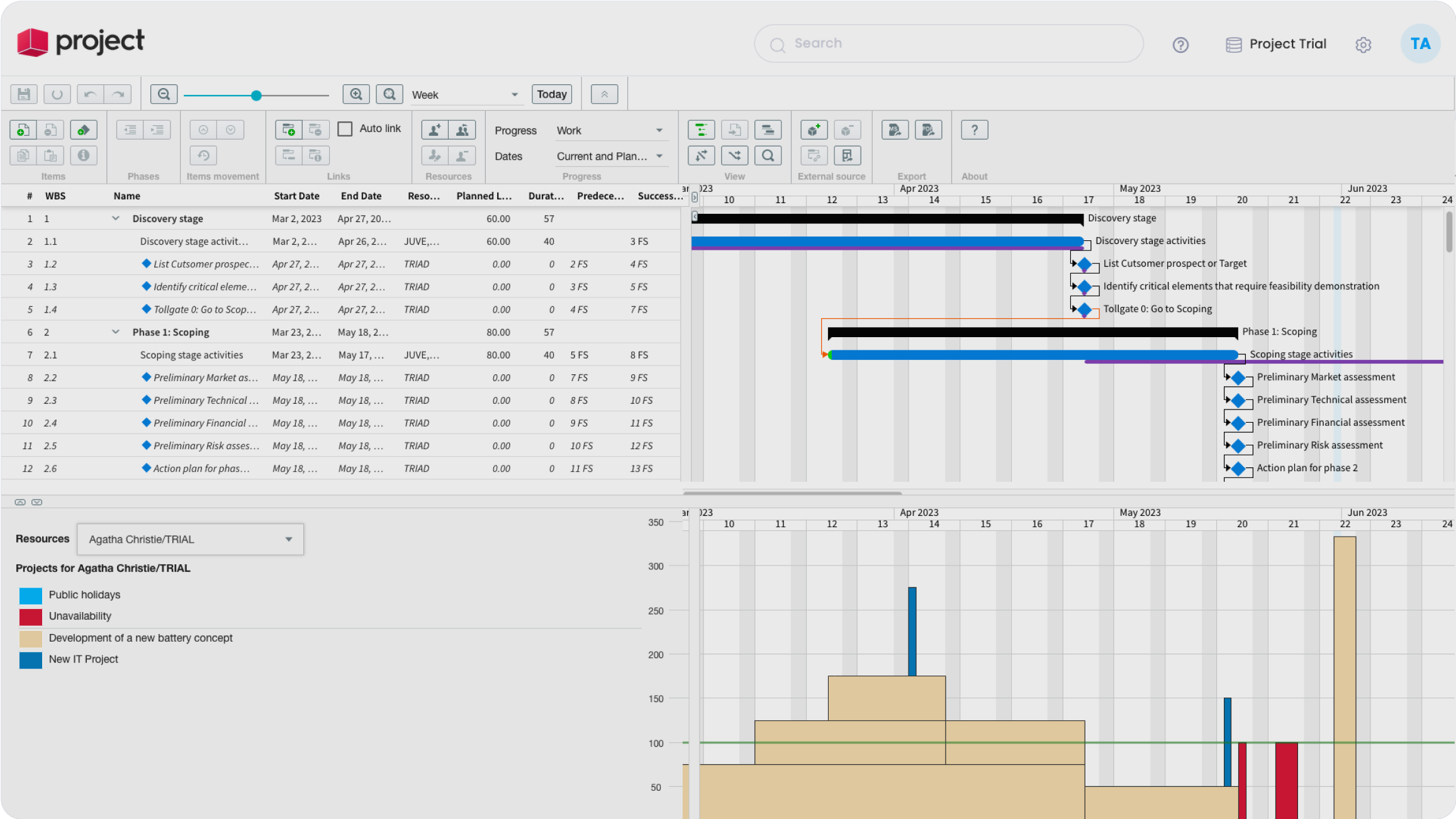 - Gestion des ressources : Le logiciel doit permettre une affectation facile des ressources, y compris la possibilité d’assigner des tâches aux membres de l’équipe, de suivre la disponibilité des ressources et de gérer la charge de travail.