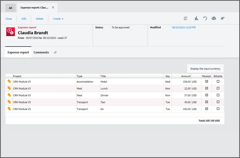 Geben Sie Projektausgaben direkt in entsprechende Projekte ein, um alle Projektausgaben besser und genauer zu überwachen. Passen Sie Felder an und klassifizieren Sie Ausgaben als Unternehmensausgaben oder erstattungsfähige Ausgaben, um Zeit zu sparen, die Rechnungsstellung für Projekte zu beschleunigen und den Erstattungsaufwand für Mitarbeiter zu reduzieren.